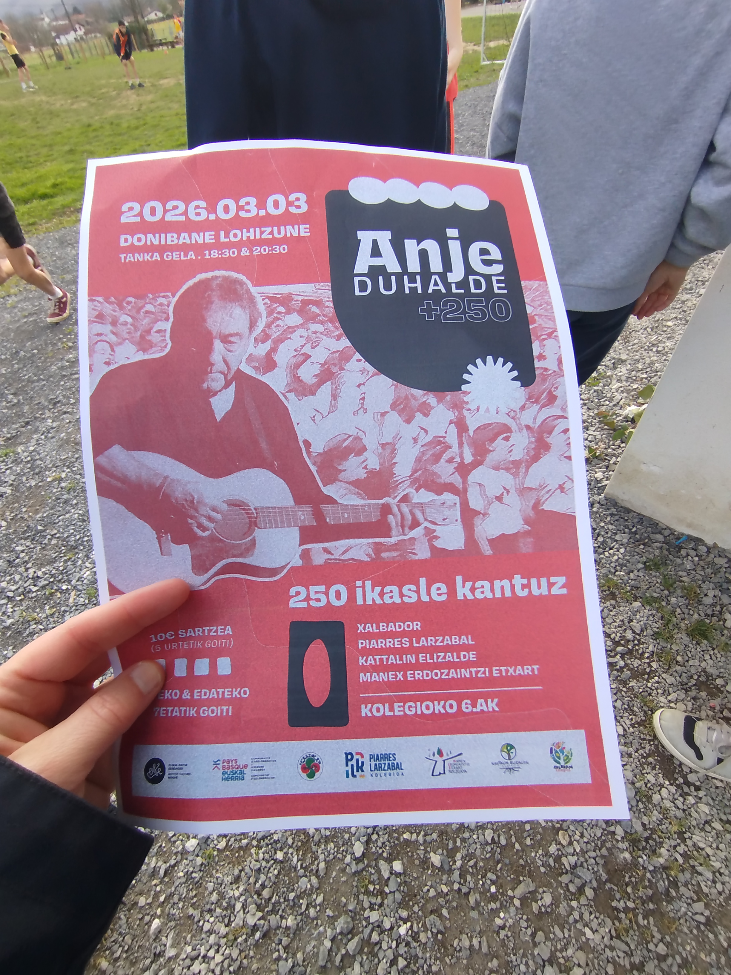 Senpere, Ziburu, Kanbo eta Larzabaleko Seaskako kolegioetako 6. mailako 250 ikasle bilduko dira Anje Duhalderekin batera kantatzeko. Kantaldi berezi horiek martxoaren 3an izanen dira Donibane Lohizunen, eta maiatzaren 22an Maulen.